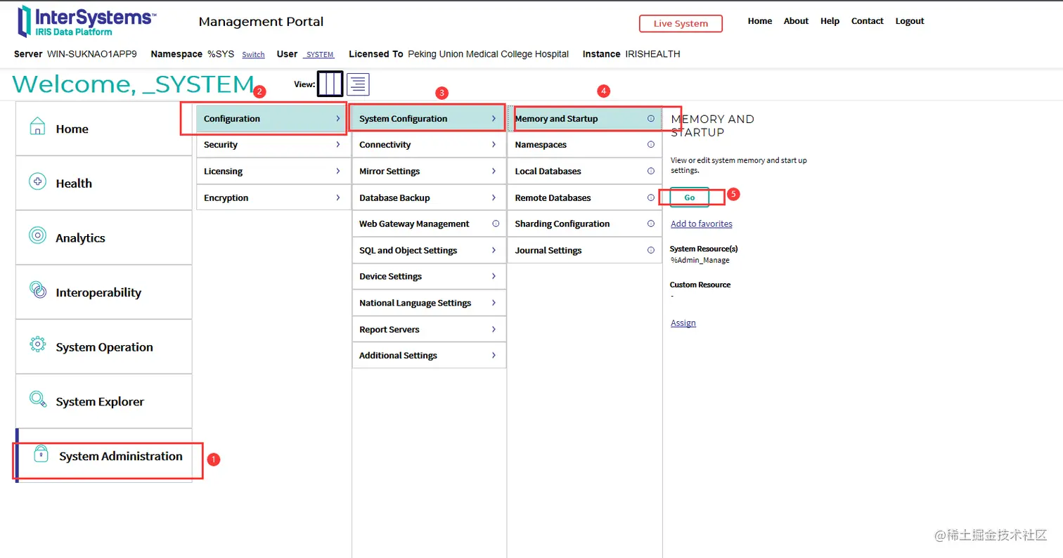 可以通过更改最大每进程内存(KB)系统配置设置来更改$ZSTORAGE默认值。在管理门户中,依次选择System Administration、Configuration、Systtem Configuration、Memory和Startup。可以根据需要增加每个进程的最大内存(KB),最大为2147483647 KB。更改每个进程的最大内存(KB)会更改后续启动的进程的$ZSTORAGE值;对当前进程的$ZSTORAGE值没有影响。