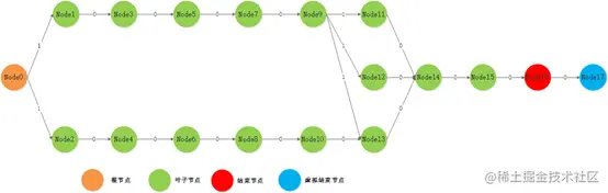 特征1:图中入度为0的点和出度为0的点有且仅有一个(分别为根节点和虚拟结束节点);其他节点的出度、入度均大于等于1;