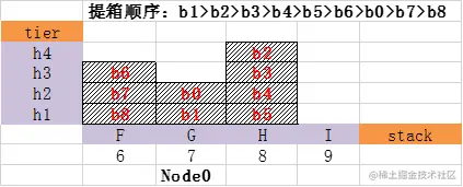 特征3:上一层的目标箱在当前堆存状态一定处于栈顶或已被提箱离场;