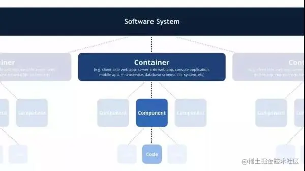 C4 模型使用容器(应用程序、数据存储、微服务等)、组件和代码来描述一个软件系统的静态结构。