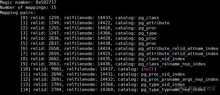 (1)数据库中的系统表有很多,但是在数据库data目录下,该如何把系统表和磁盘上的文件一一对应呢,我们可以通过pagehack查询data目录下的pg_filenode.map