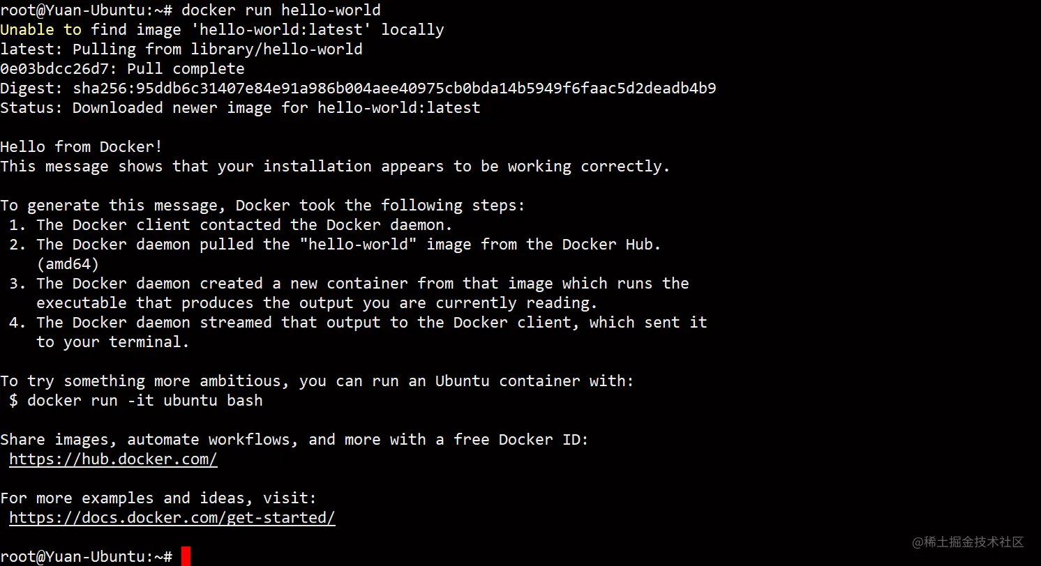 sudo docker run hello-world