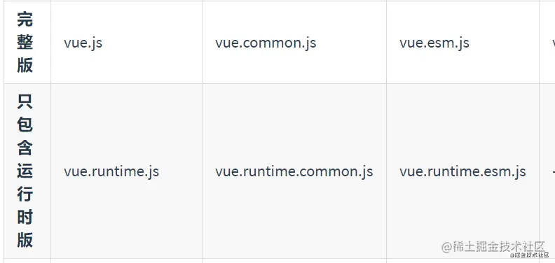 - 完整版:可以从HTML或template直接得到视图,有compiler,可一将html里含有{{n}},@click,v-for这些变成真实的节点