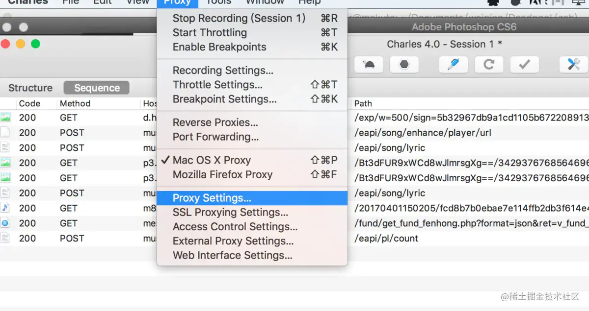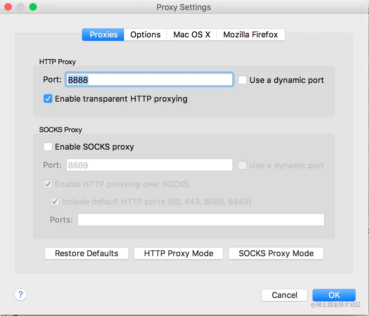 打开ProxySettings 并且 勾选Mac OS X Proxy , 配上端口