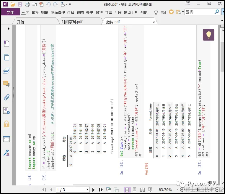这里有一个“时间序列.pdf”的文件,共3页,我们将其每一页存为一个PDF文件。代码如下: