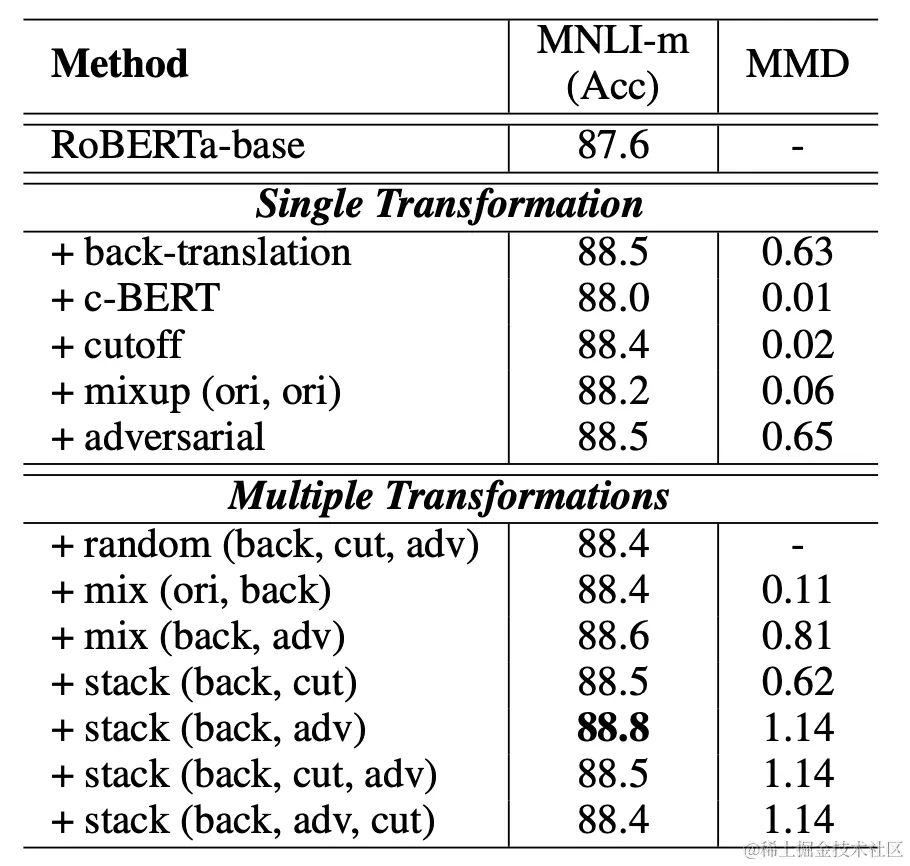 上述数据增强方法思路其实都很一致,找到已有样本的相似样本,训练目标也较为一致。这时候思考一个问题,不同的数据增强方法是等同的,还是互补的呢?是否可以混合所有数据增强方法提升模型泛化能力呢?CV上已经证明是有效的,应用到文本就难多了,对文本轻微的可能会带来语意上的巨大差异。\