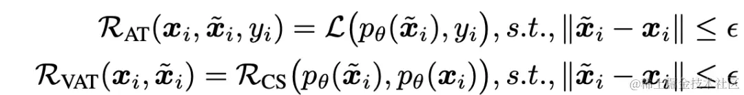 Adversarial Training(对抗训练):对抗训练方法被用于文本数据提升模型的鲁棒性。对抗训练不需要任何额外的领域知识,只需要模型本身产出样本,这些样本都是模型最容易预测错的样本。下面是两个最常用的对抗训练的loss。\
