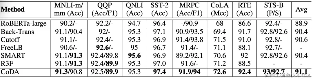 如何用有限的数据做出最佳的效果?除了一个优秀的模型以外,最有效的方法就是做数据增强了。自然语言处理(NLP)不同于图像,可以做裁剪,反转,缩放等操作来增强,而是有文本特别的处理方式。这篇论文《CODA: CONTRAST-ENHANCED AND DIVERSITYPROMOTING DATA AUGMENTATION FOR NATURAL LANGUAGE UNDERSTANDING》提出的CoDA方案号称能在Roberta-large上平均提升2.2%的效果,那我们就来看看这篇到底提出了哪些方法吧。