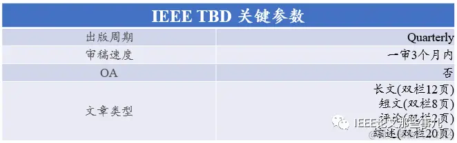 总的来说,IEEE TBD收录范围广,审稿速度快,业内认可度高,发展速度快,近几年有晋升CCF-A的机会。\