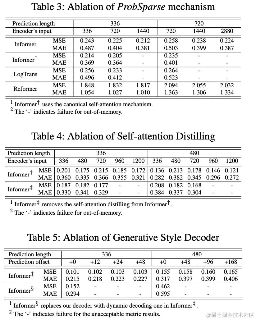- ProbSparse self-attention机制的效果:ProbSparse self-attention的效果更好,而且可以节省很多内存消耗;