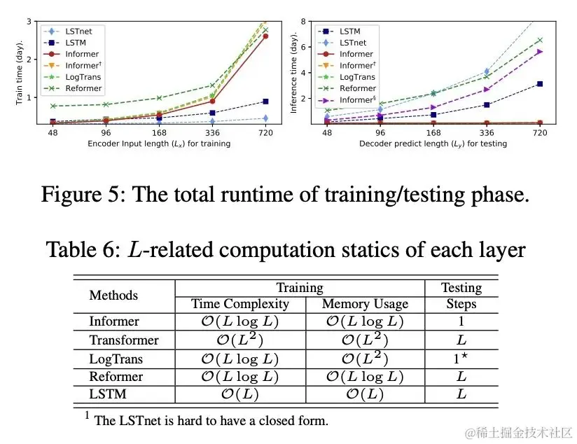 - 在训练阶段,在基于Transformer的方法中,Informer获得了最佳的训练效率。