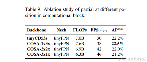 为了在计算速度上得到最好的折衷,我们提出了一个新的概念,即在CSPOSANet的计算块之间进行梯度截断。如果我们将原来的CSPNet设计应用到DenseNet或ResNet架构上,由于这两种架构的第j层输出是第1层到(j−1)层输出的积分,我们必须将整个计算块作为一个整体来处理。