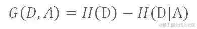 如目标变量D的信息熵为 H(D),而D在特征A条件下的条件熵为 H(D|A),那么信息增益 G(D , A) 为: