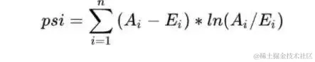 PSI表示的是实际与预期分布的差异,SUM( (实际占比 - 预期占比)* ln(实际占比 / 预期占比) )。