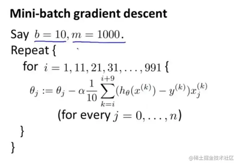 好了,快到了,还有一个要通过!现在,在小批量梯度下降中,我们不再计算整个训练集或随机样本的偏导数,而是在整个训练集的小子集上计算。