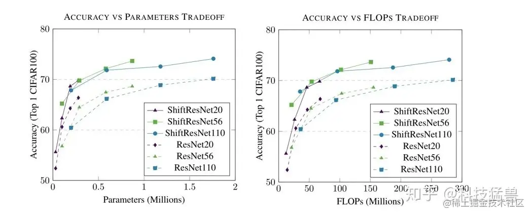 图10:ShiftNet模型在精度和参数量/计算量之间提供了很好的trade-off