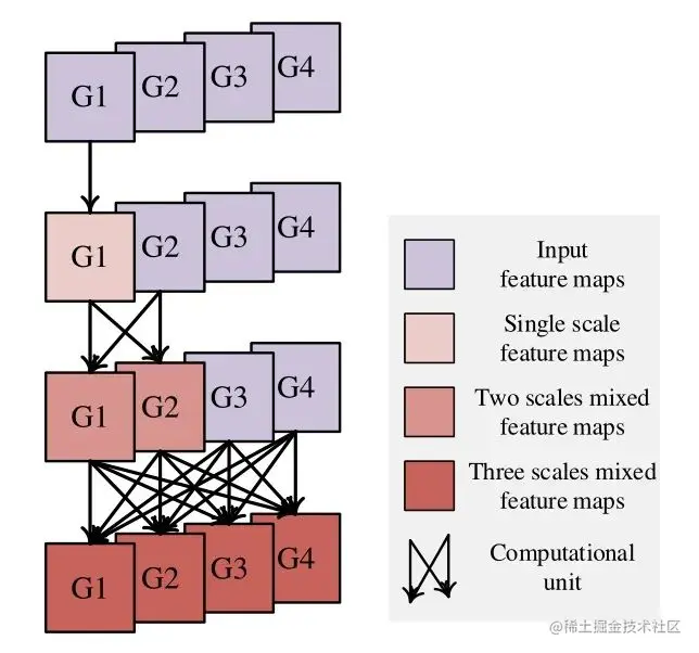 具体来讲,比如现在输入的通道如图4左侧图所示,相同颜色的通道应该归为一组 (此时是最优情况),但是现在我其实是事先告诉你哪些通道应该归为一组,即颜色应该相同。其实你事先是不知道的,即:我们不知道具体哪些通道的颜色是相同的,也就是说,我们不知道具体哪些通道应该归为一组。这时,为了解决这个问题,我们想先通过一个排序 (permutation),使得4个应该分到group 1的channel排到最上面,把4个应该分到group 2的channel排到5-8位置。这样,我们就可以直接把最上面的4个通道归为group 1,再下面的4个通道归为group 2,再下面的4个通道归为group 3,以此类推。shift进行完后,再通过一个排序恢复原来的channel的顺序。但是这样做排序 (permutation)是未知的,我们的目的就是关于通道排序无关的。