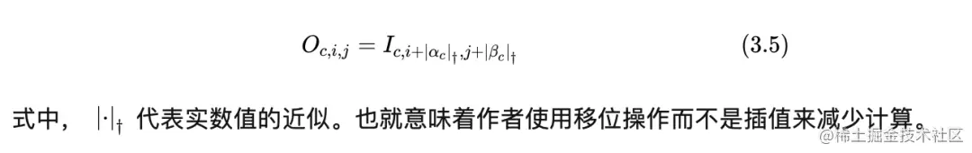 这里,你会发现Shift操作与Depthwise Convolution的不同之处在于Shift操作的卷积核的每一个channel中的卷积核 中的 个值,只有一个是1,其他都是0。这里的 是个索引,告诉我们位于 处的这个值为1,其他 个值为0。