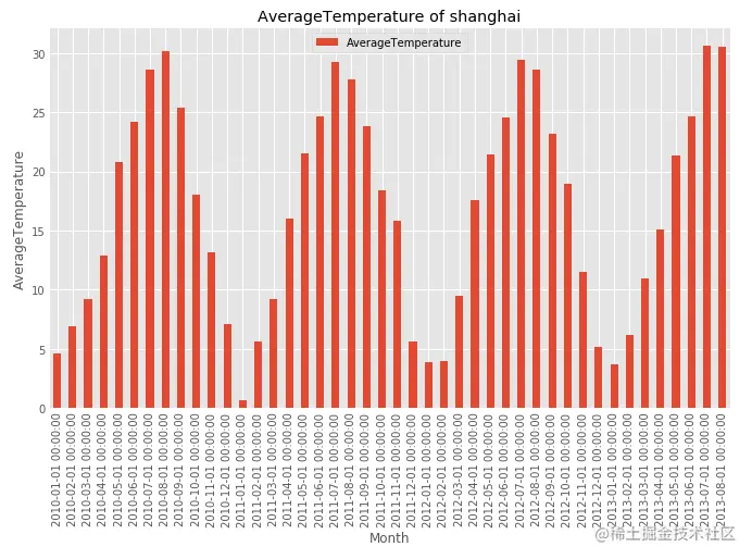 df = climate.loc[(climate['Country']=='China')&(climate['City']=='Shanghai')&(climate['dt']>='2010-01-01')]\