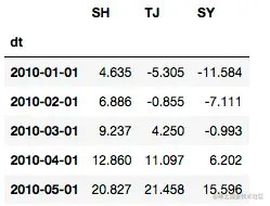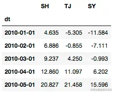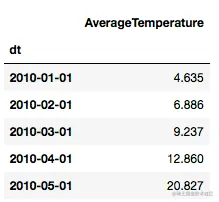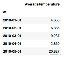 df3 = climate.loc[(climate['Country']=='China')&(climate['City']=='Shenyang')&(climate['dt']>='2010-01-01')]\