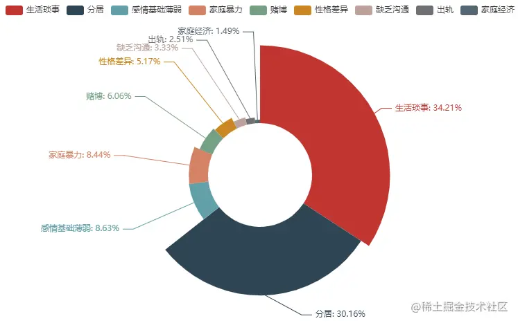 从2015年到2019年,结婚率在逐年的下降,而与此同时呢,离婚率正在不断的升高,并在2019年达到了3.4‰,相比较于2018年略有上升,那么究竟是什么原因维持多年婚姻生活的夫妻选择离婚的呢