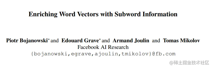 【Enriching Word Vectors with Subword Information】论文提出了一种文本表示模型fasttext。类似wod2vec等模型,在学习词表示的时候都忽略了词的形态特征(如词由哪些结构组成),这就对那些词汇量大和生僻词多的语言不友好,也难以处理oov的词语。而论文中提出的fasttext模型,则使用了subword特征(字符级别的ngram),每一个subword都会学一个表示,最终的词向量,由该词所有的subword向量的和来表示。