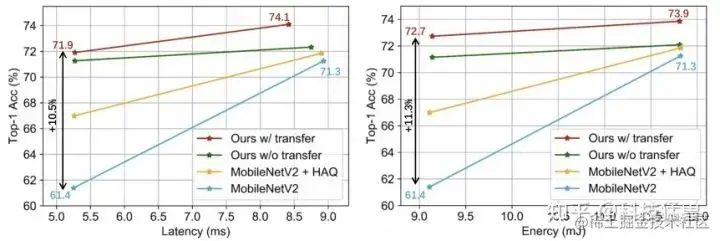 可以清楚地看到,HAQ优于基于规则的量化baseline:它在消耗相似的Energy的同时获得了