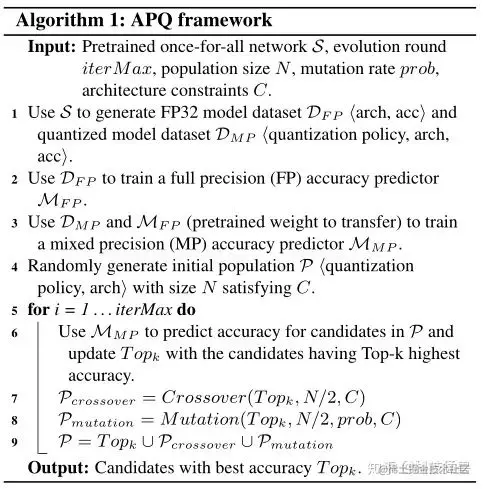 答:核心思想是训练一个quantization-aware accuracy predictor加速搜索过程。