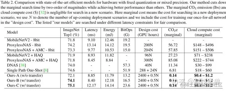 可以发现,APQ在精确度上超过了SOTA,且极大地减少了 排放和云计算的边际成本。