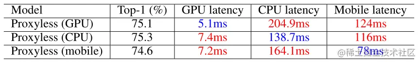 - 在代理任务上搜索得到的最优结果在目标任务上是次优的,尤其是当考虑Latency时。