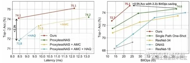 在上面介绍的自动机器学习流水线中,给定目标硬件设备 ** 和目标资源约束 ** ,我们依次对模型进行了架构搜索,结构化剪枝,混合精度量化的过程。这一系列过程进行完后,我们得到了适用于 的最优模型,且它的资源消耗满足 的限制。