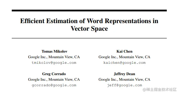 论文标题:Efficient Estimation of Word Representations in Vector Space