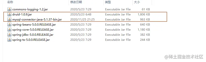 导入jar包,jdbcTemplate有5个包,但还依赖数据库连接池相关包和mysql连接的包。Druid和c3p0都可以。
