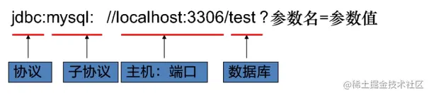 协议名:子协议://服务器名或者IP地址:端口号/数据库名?参数=参数值