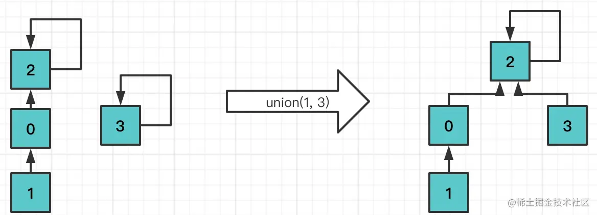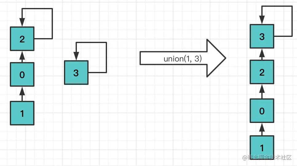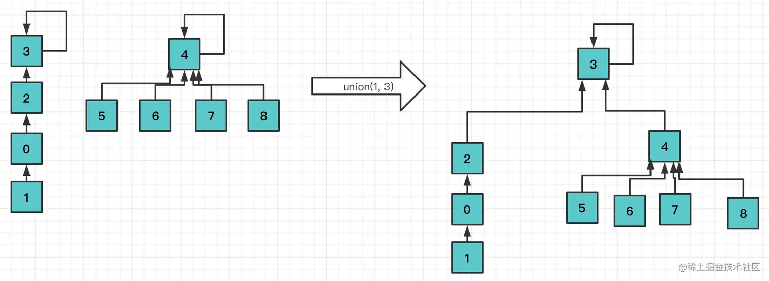 在union过程中, 可能会出现树不平衡的情况,甚至退化成链表,需要进行优化。