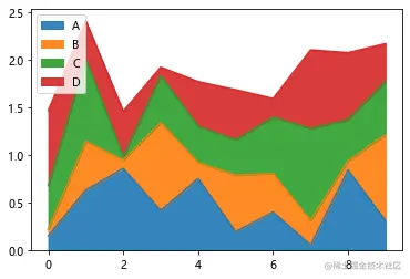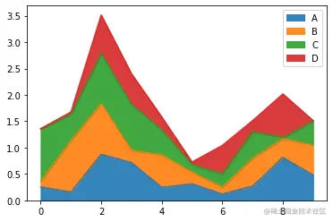 ‘area’ : area plot#与x轴所围区域图(面积图)。Stacked=True时,每列必须全部为正或负值,stacked=False时,对数据没有要求