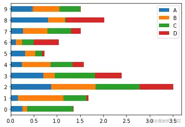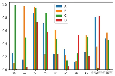 df= pd.DataFrame(np.random.rand(10, 4), columns=['A','B','C','D'])