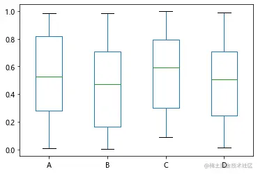 df= pd.DataFrame(np.random.rand(1000, 4), columns=['A','B','C','D'])