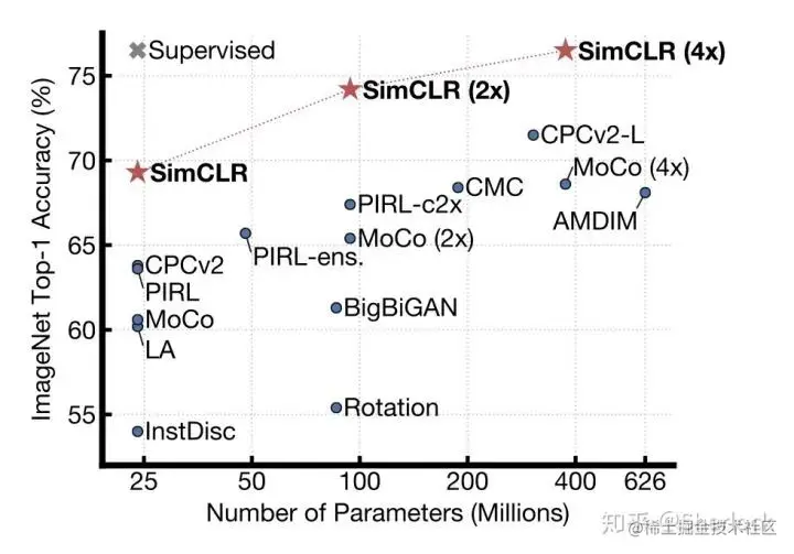 最近,hinton 组也放了一篇做 ssl 的 paper,其实都是用的同一套框架,也没有太多的 novelty。虽然摘要里面说可以抛弃 memory bank,不过细看论文,训练的 batchsize 需要到几千,要用32-128 cores 的 TPU,普通人根本用不起。