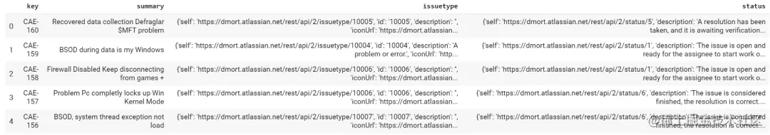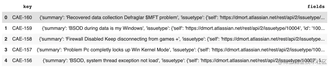df = pd.DataFrame.from_records(results [“ issues”],columns = [“ key”,“ fields”])