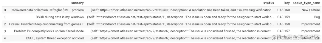 从上表看出,只有summary是可用的,issuetype、status等仍然埋在嵌套对象中。