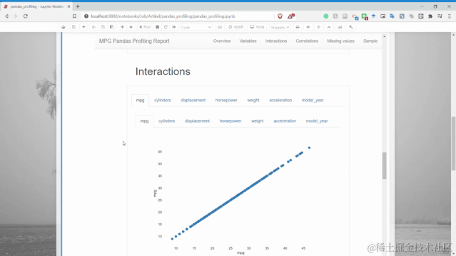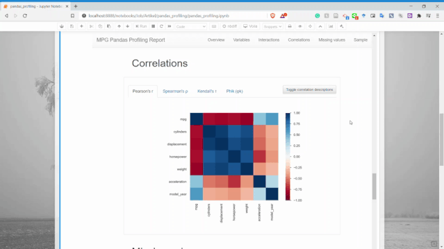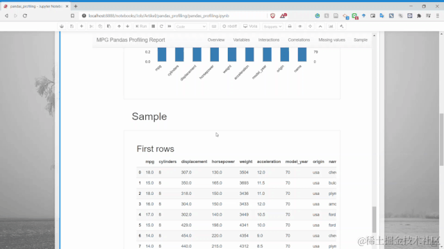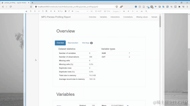 使用Pandas Profiling生成了一个快速的报告,具有很好的可视化效果。报告结果直接显示在notebook中,而不是在单独的文件中打开。