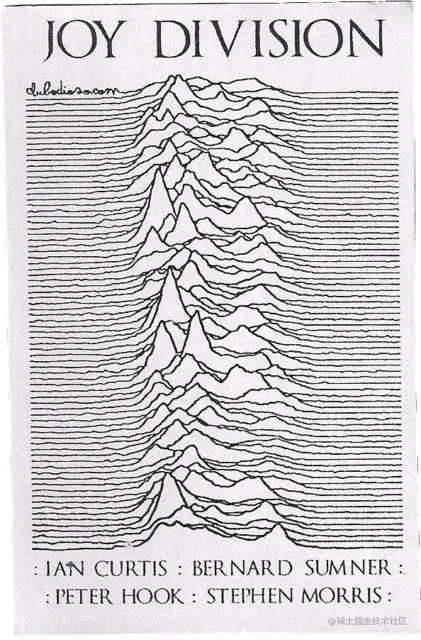 下面的这幅图可能很多读者朋友们都看到过,这是英国摇滚乐队**「Joy Division」在1979年发行的其第一张录音室专辑「Unknown Pleasures」的封面,由艺术家「Peter Saville」**基于射电脉冲星信号的数据图创作而成,成为了一种流行文化的符号标志。