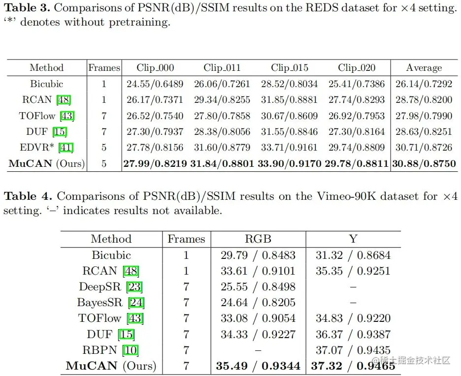 - 提出一种新的MuCAN用于视频超分,它在多个公开数据集取得了SOTA性能;