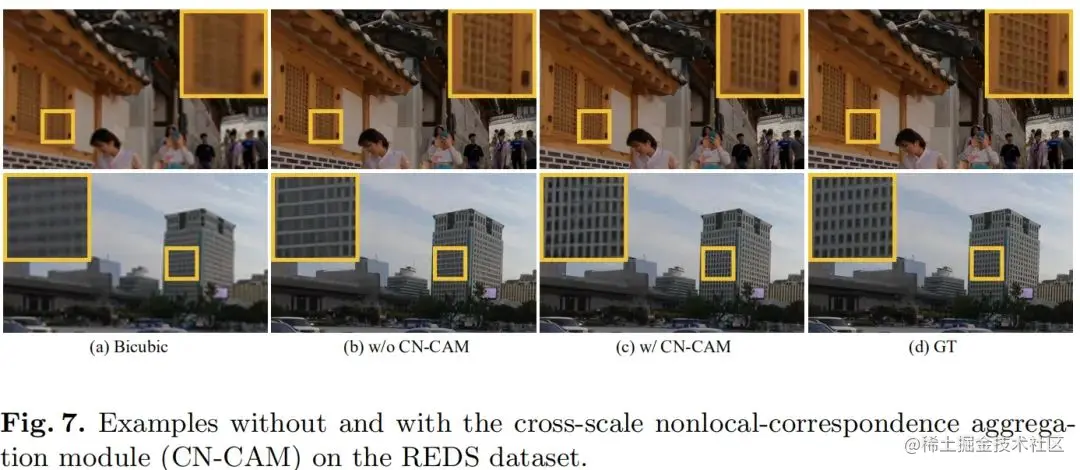 最后的最后,作者对比MuCAN与EDVR的重建效果,见下图。可以看到:EDVR生成的图像在某些情况下会存在伪影问题,而MuCAN则不存在该问题。