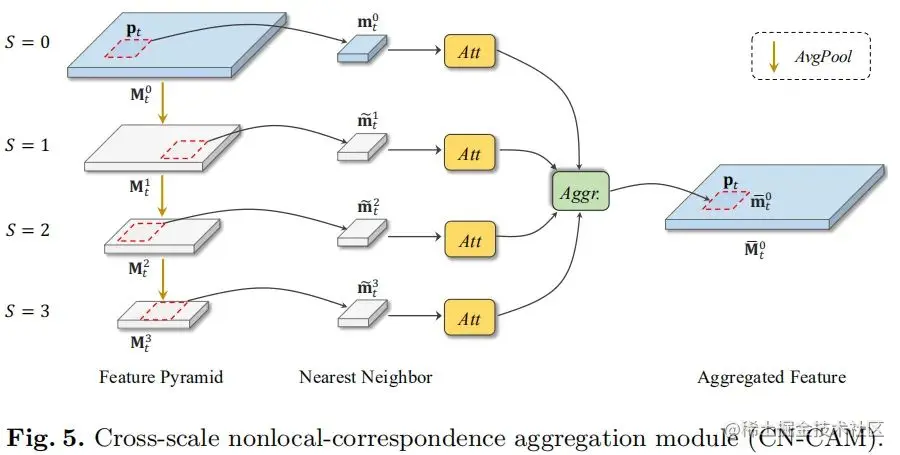 给定 中位置q处的query块 ,我们需要在其他三个尺度进行相似块的非局部搜索: