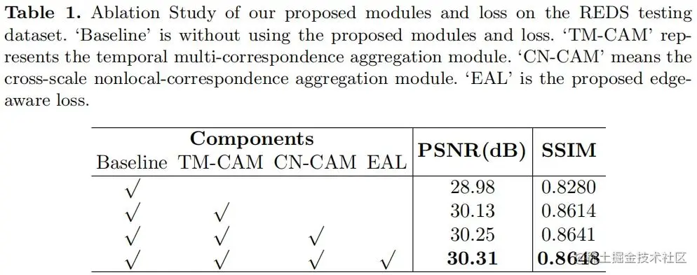 我们先来看一下消融实验效果对比以更好的说明所提模块的有效性,见下图。可以看到TM-CAM对齐模块取得了1.15dB的性能提升;CN-CAM在此基础上取得了额外的0.12dB提升;EAL在此基础上取得了0.06dB的性能提升。