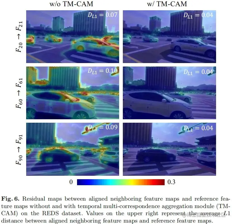 与此同时,作者还对比了添加TM-CAM与否两种情况下的重建差异对比热图,见下图。可以看到:添加TM-CAM后,重建图像与GT之间的误差更小,且误差分布更均匀,即更平滑。