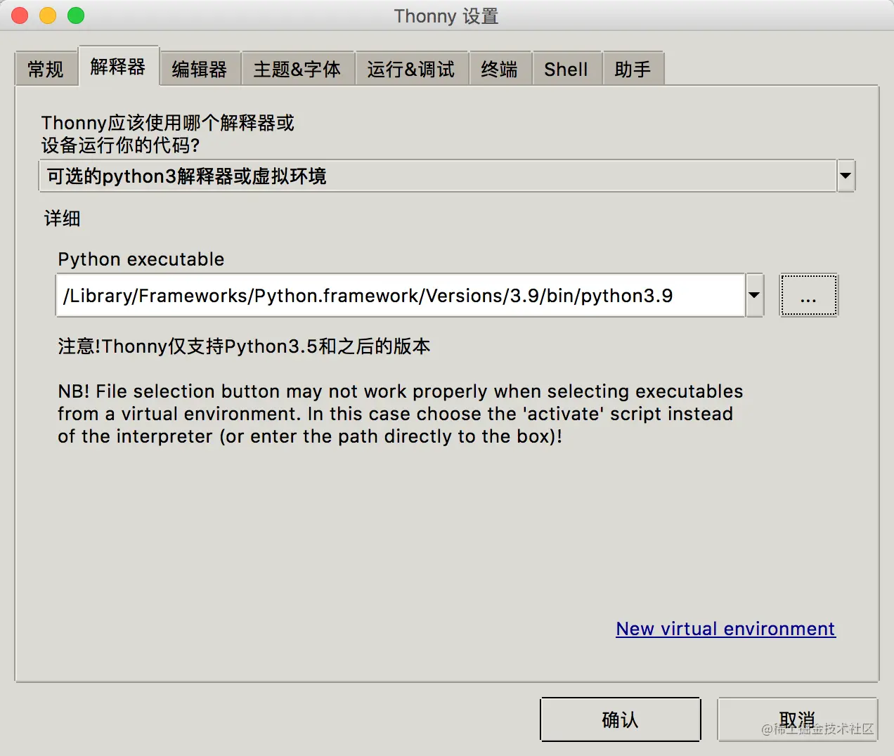 当然了,如果你觉得 Python 3.7 已经过时了,想使用最新的 Python 3.9 也是可以设置的