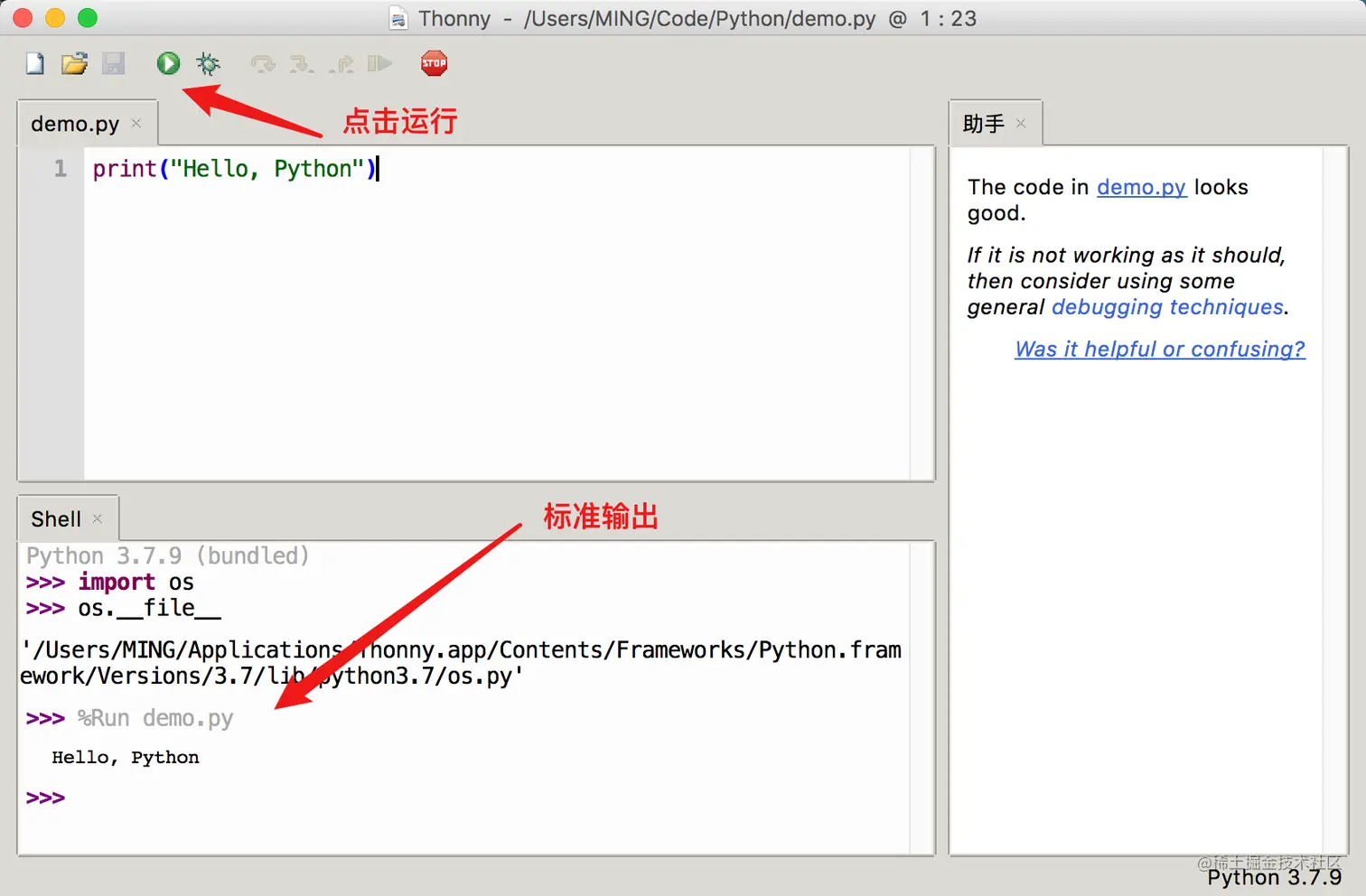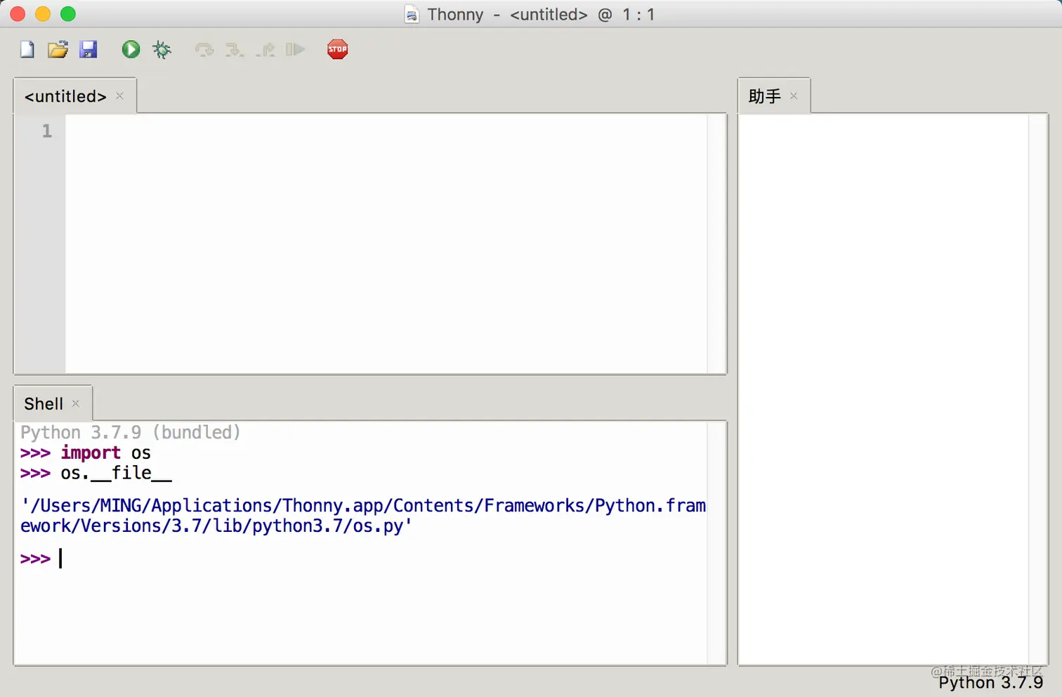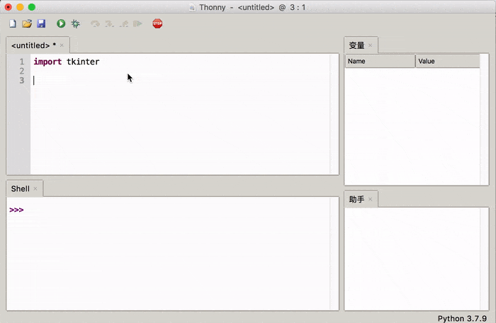 Thonny 内置了 Python 3.7.9 ,因此它不需要你去官网下载 Python 解释器,也不用你去学习如何配置环境变量。
